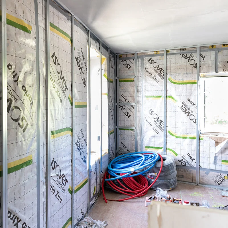 Nous réalisons toutes fabrications en bois sur mesure, travaux de plâtrerie, pose de plaques et isolation intérieure. Nos compétences couvrent également les agrandissements en ossature bois et solutions d’isolation extérieure avec bardage, afin d'assurer durabilité et performance énergétique.